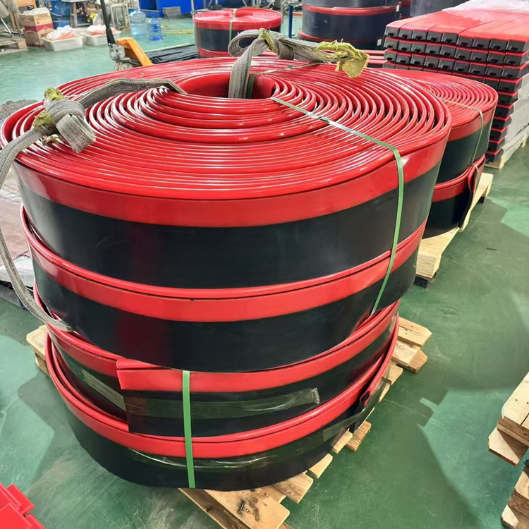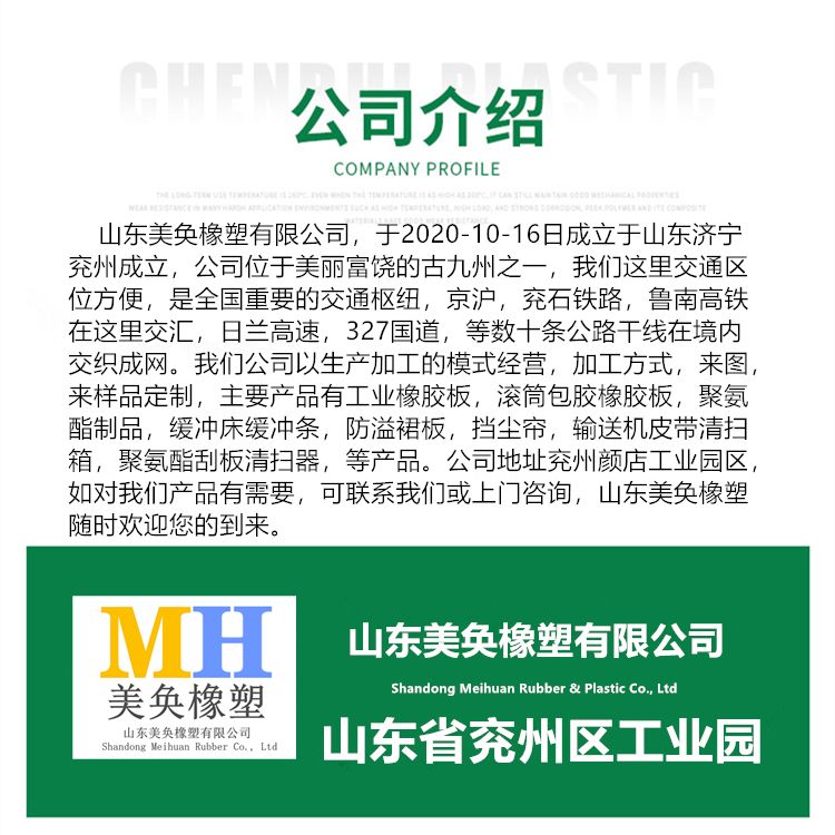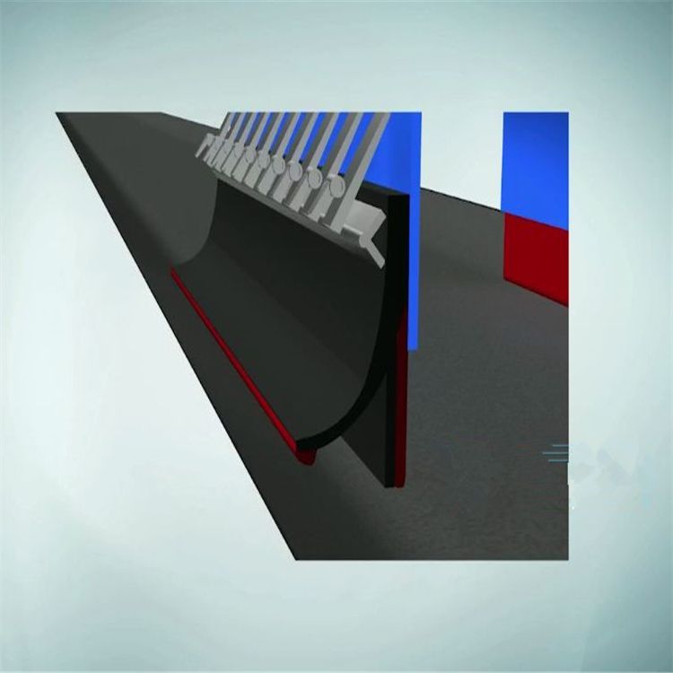 聚氨酯橡胶防溢裙板是带状、底部双层的橡胶板,与皮带接触的部分因要长期经受巨大的摩擦力,所以该部分我们一般采用聚氨酯山东美奂橡塑有限公司3块,聚氨酯具有的耐磨性。聚氨酯块和橡胶板采用热LIU化工艺结合,能保证承受长时间的摩擦不与橡胶分离。
