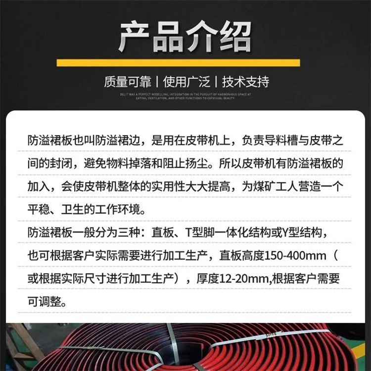 美奂聚氨酯防溢裙边 双密封导料槽挡煤裙板 15*180mmY型